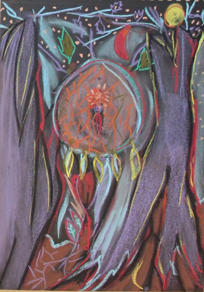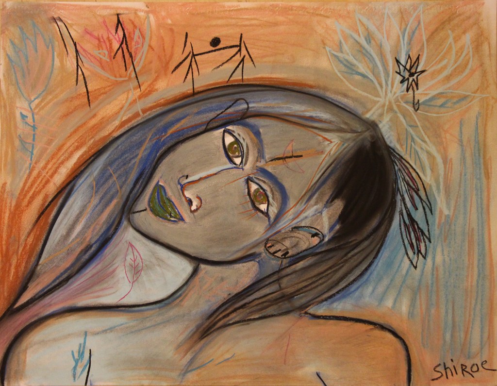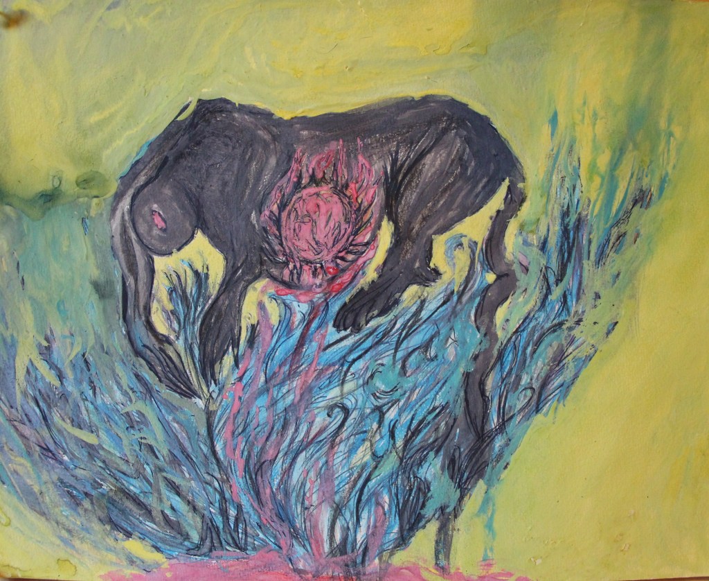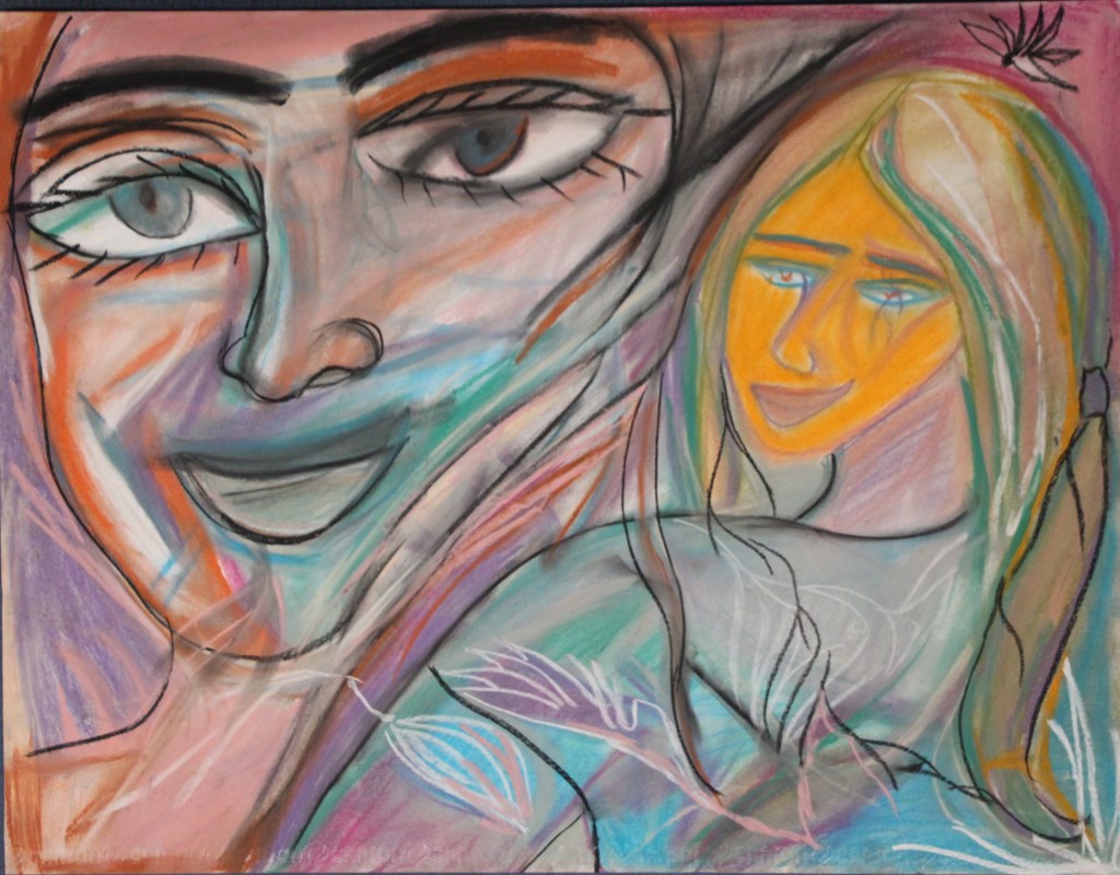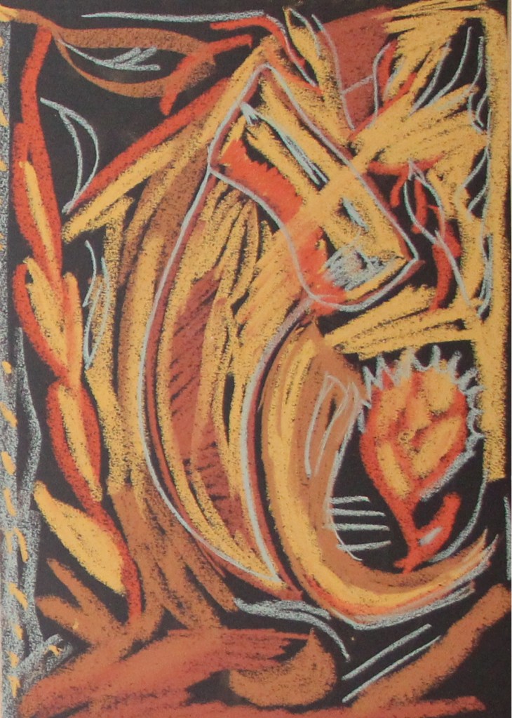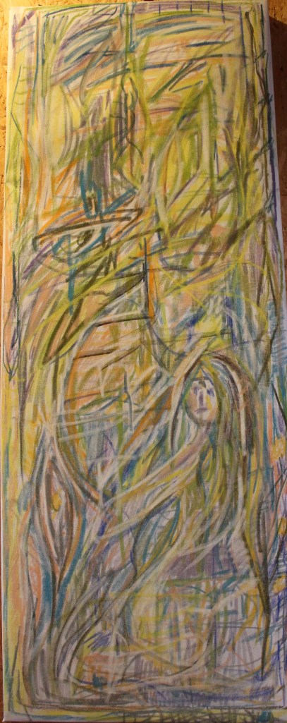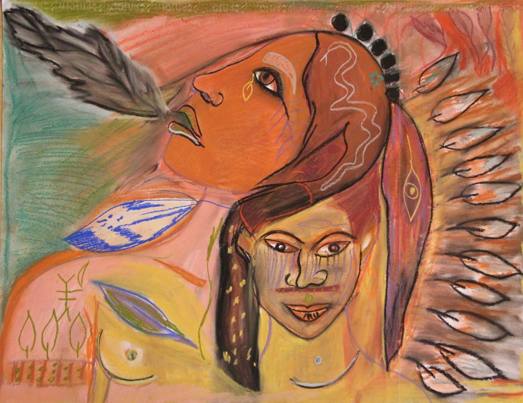 Série de tableaux dans un style brut, réalisés à la craie (pastels tendres et secs) et peintures acryliques.