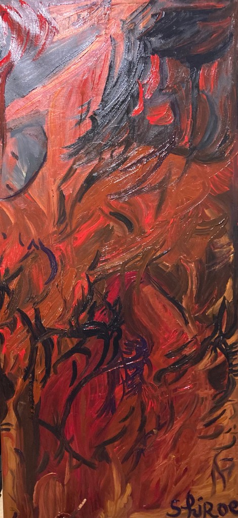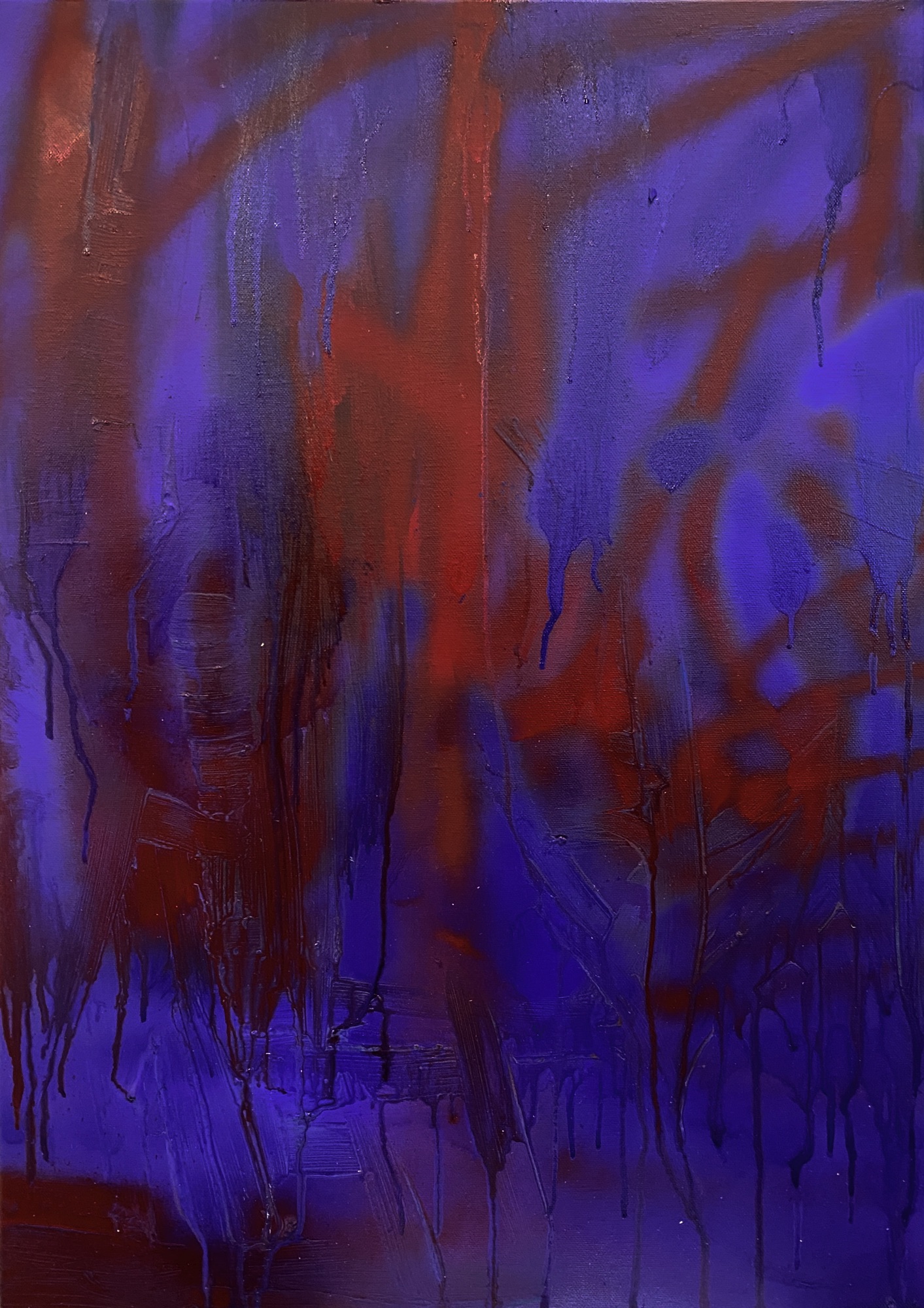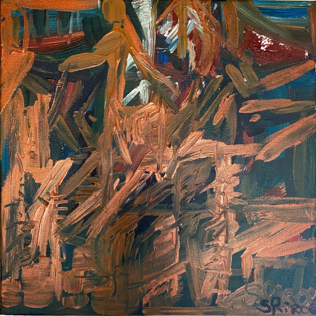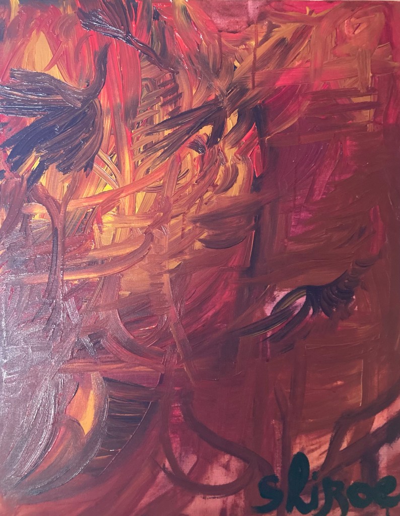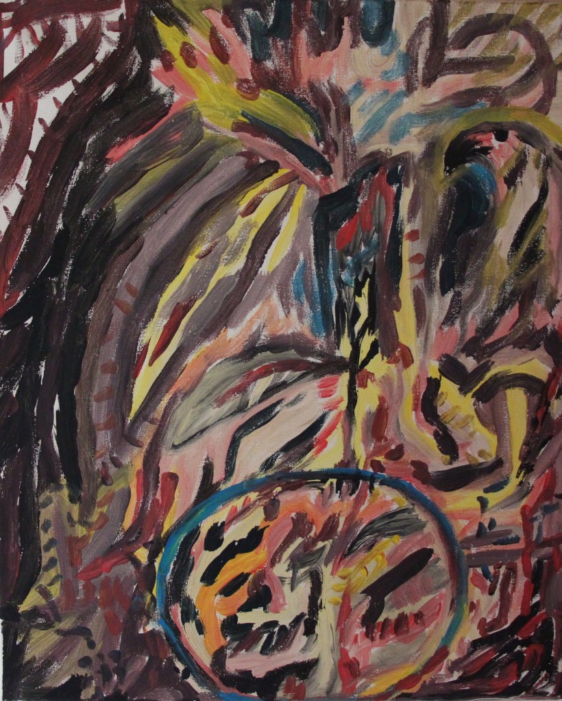 Série de tableaux graff / abstrait. (Peintures aérosol / à l’huile. Inspiration pyrogravure etc)