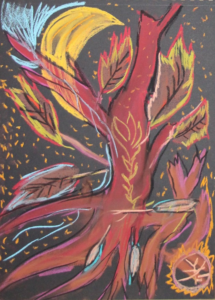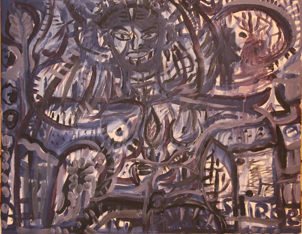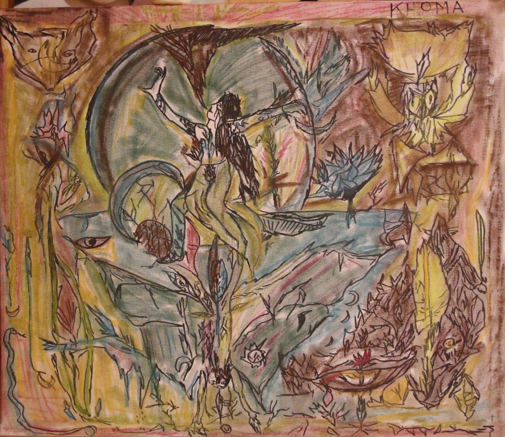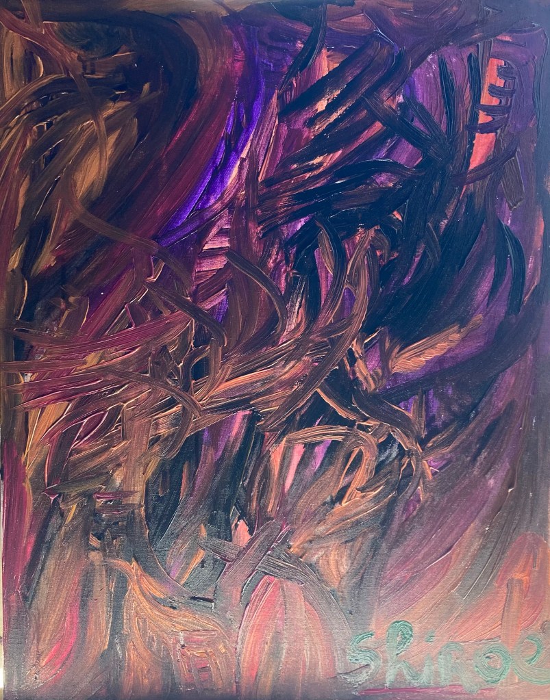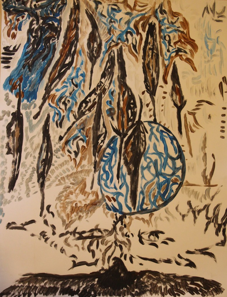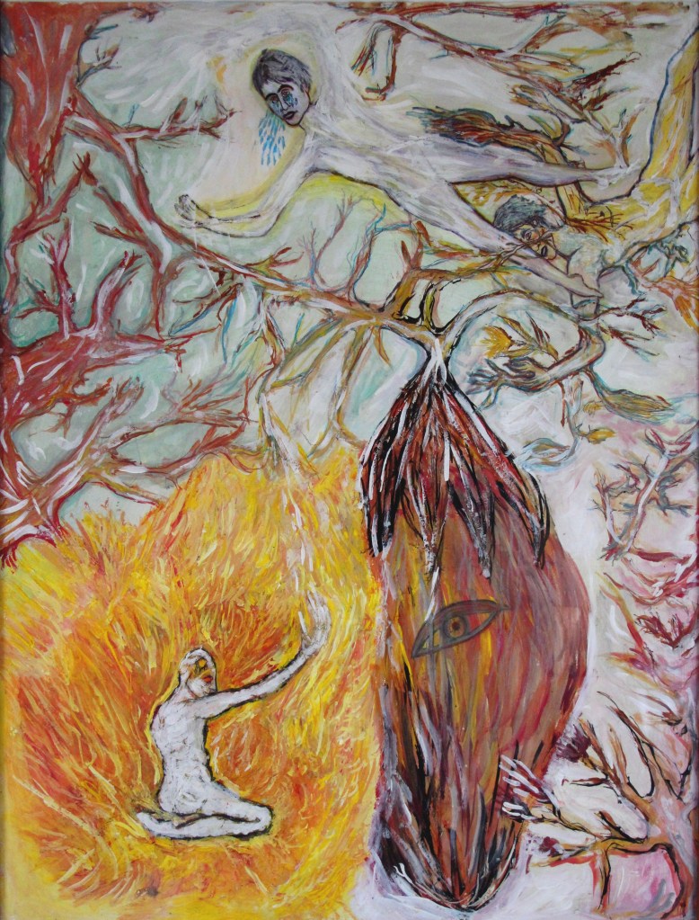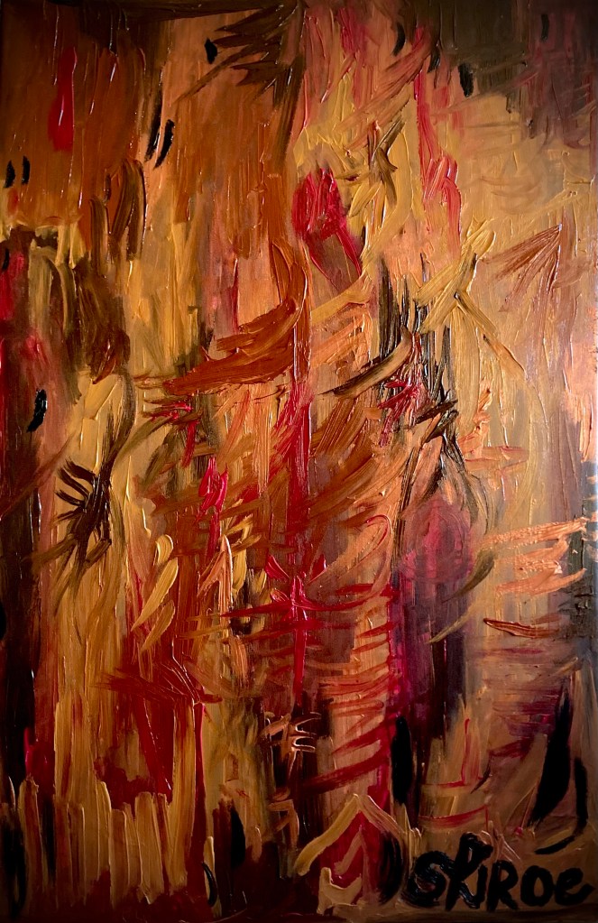 Peinture acrylique. Style abstrait/tribal (Eau Terre Feu Ciel).