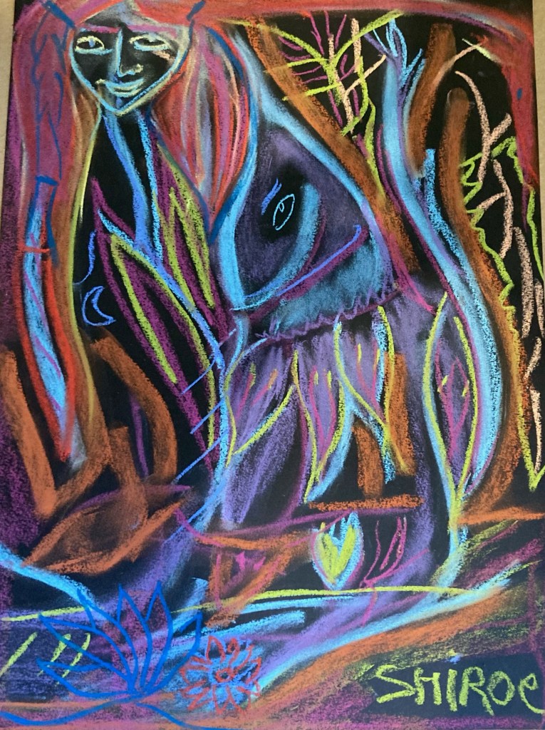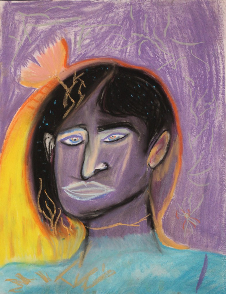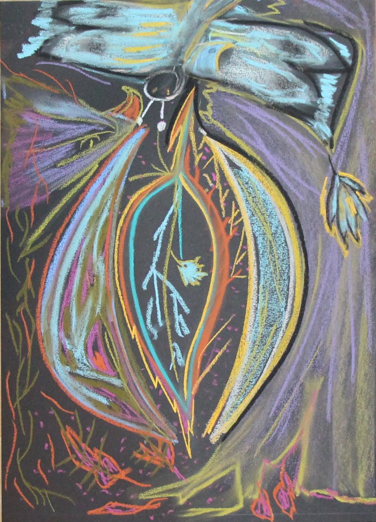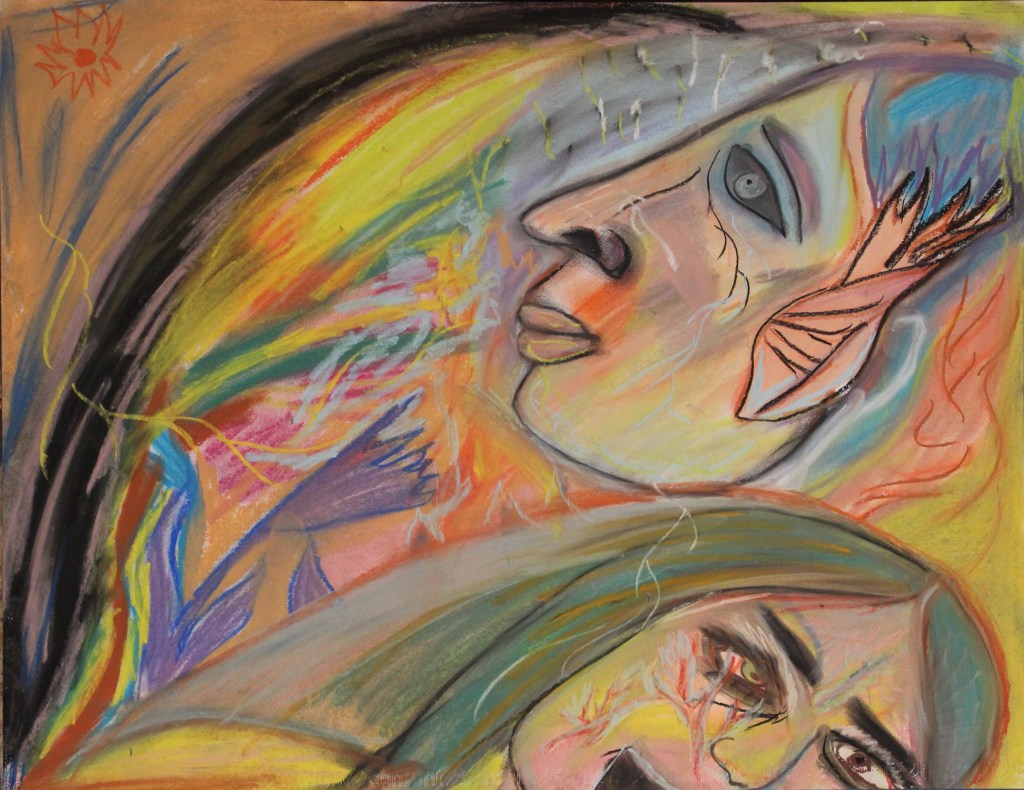 Série de dessins aux pastels soft, sur fond noir, ayant pour thèmes la poésie et le signe astral Balance ♎︎