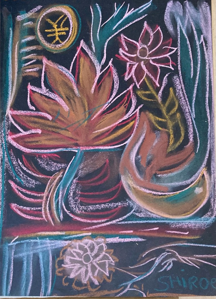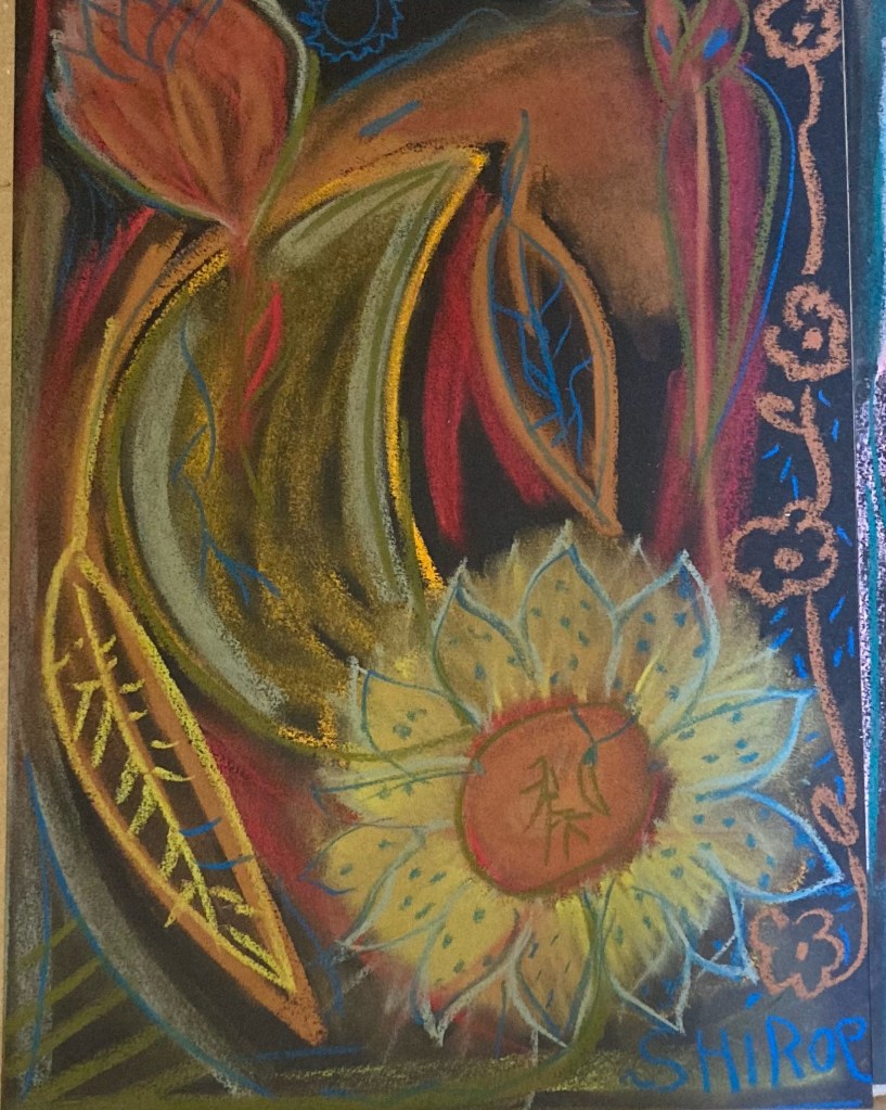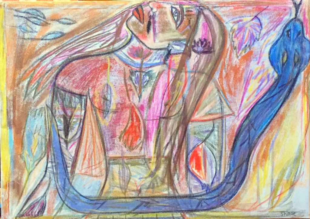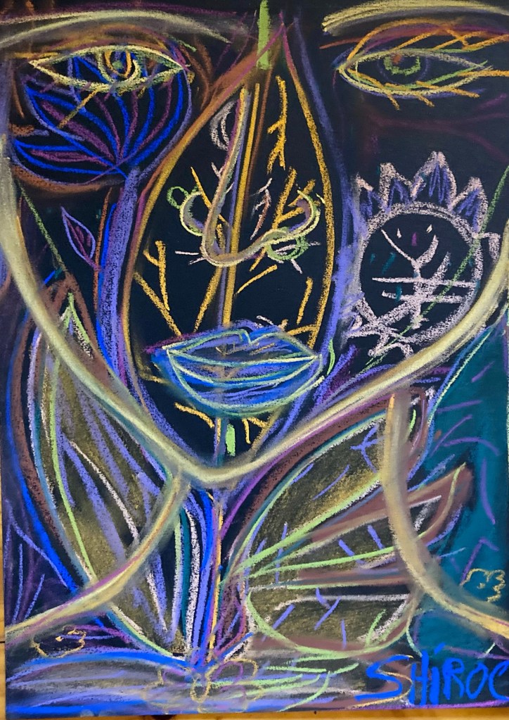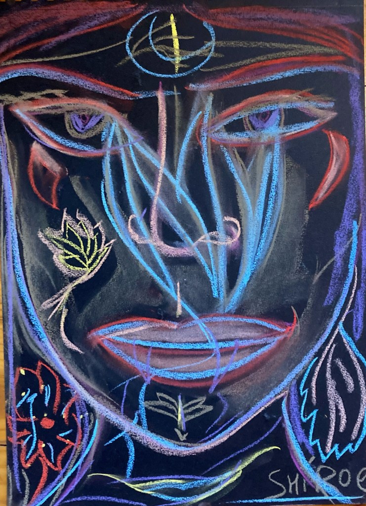 Série de dessins aux pastels soft, sur fond noir, ayant pour thèmes la poésie et le signe astral Balance ♎︎